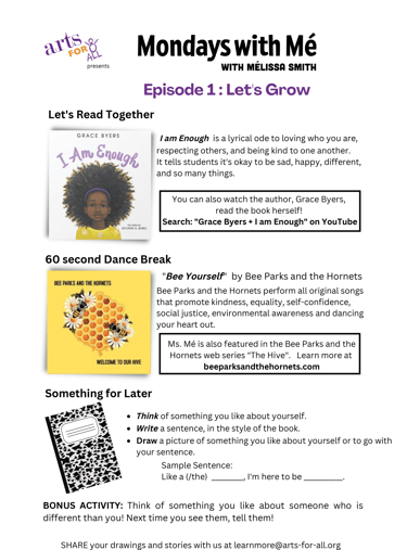 Mondays with Mé brings positive and inclusive lessons into early elementary classrooms across New York City, and you're invited to experience these delightful 20–30 minute episodes with your students!